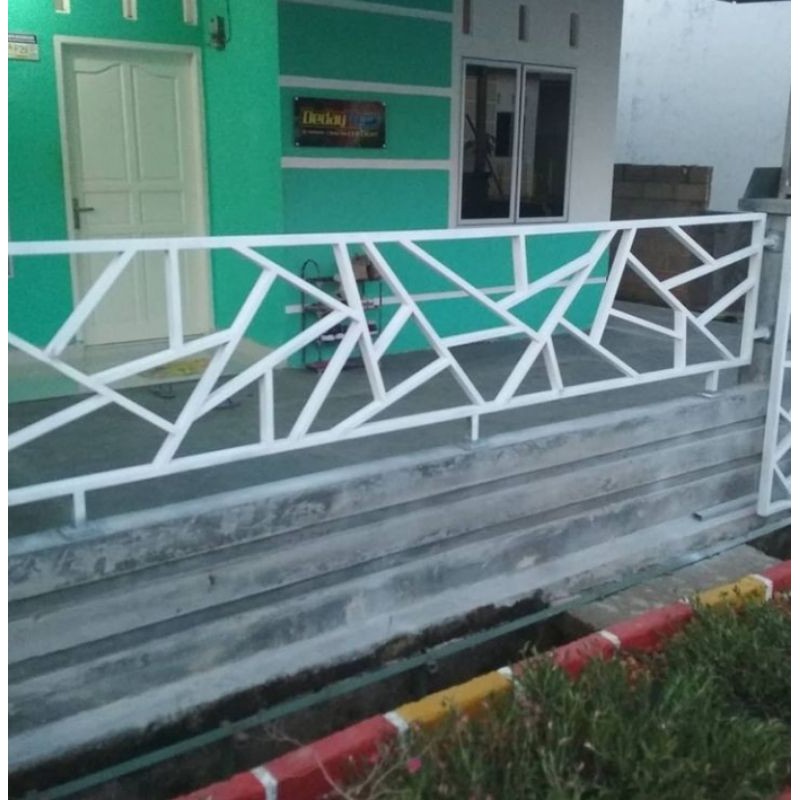 Gambar di atas adalah pagar besi hollow unik yang memakai satu pola geometri saja: persegi panjang. Namun, ukurannya berbeda-beda dengan susunan berselang-seling untuk tampilan estetik.